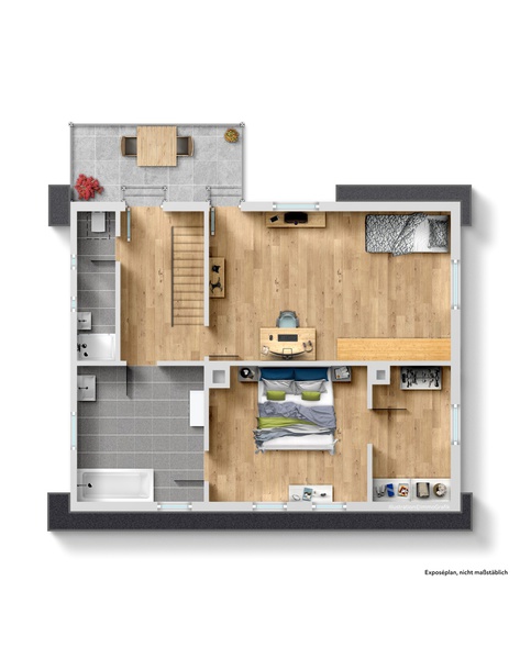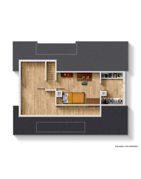 Im Dachgeschoss ist ein Teilbereich ausgebaut und kann etwa als Büro, Gästezimmer oder Hobbyraum genutzt werden.