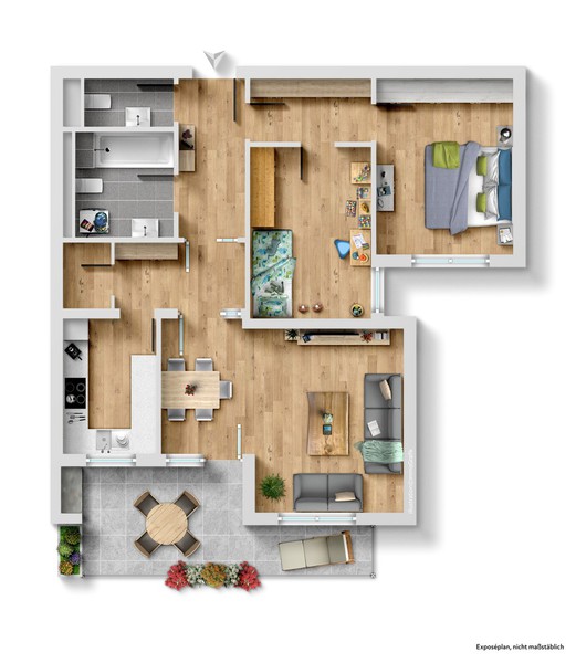Die Wohnung ist derzeit an sehr zuverlässige und angenehme Mieter vermietet, die gerne weiterhin in der Wohnung wohnen bleiben möchten. Dies macht das Objekt besonders attraktiv für Kapitalanleger, die eine solide und unkomplizierte Investition mit bestehenden Mieteinnahmen suchen. Die monatliche Kaltmiete inklusive Stellplatz beträgt derzeit 860,– €.